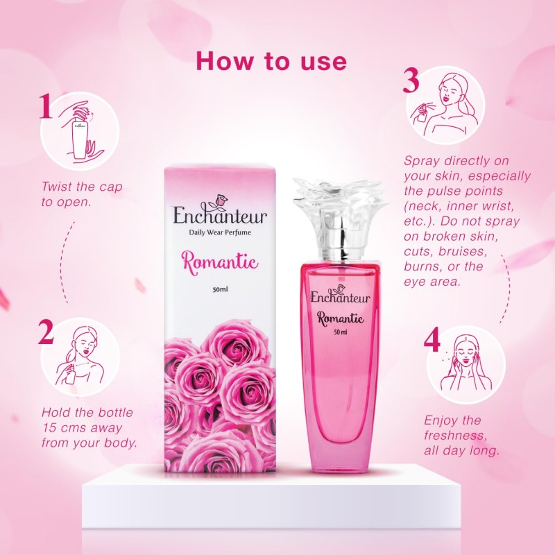 Enchanteur Romantic Daily Wear Perfume takes your heart down the love-lanes of Paris. With feminine notes of Bulgarian Rose, White Jasmine, Mandarin and Violet along with rich Vanilla, it's a vibrant romance in harmony.