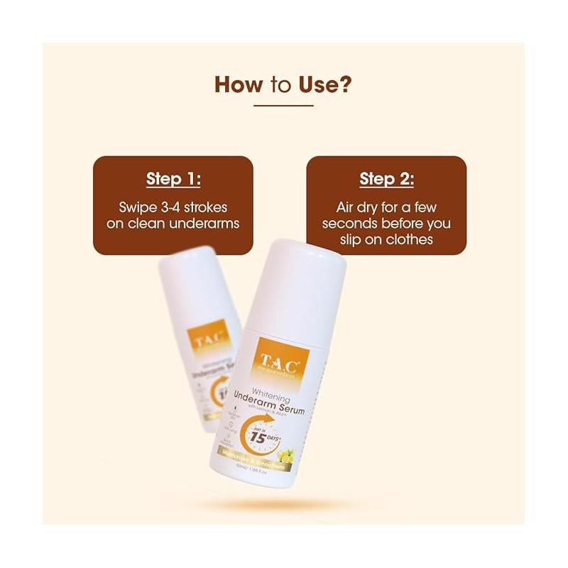 • T.A.C Whitening Underarm Serum is designed to control odour and not leave white marks on your skin.