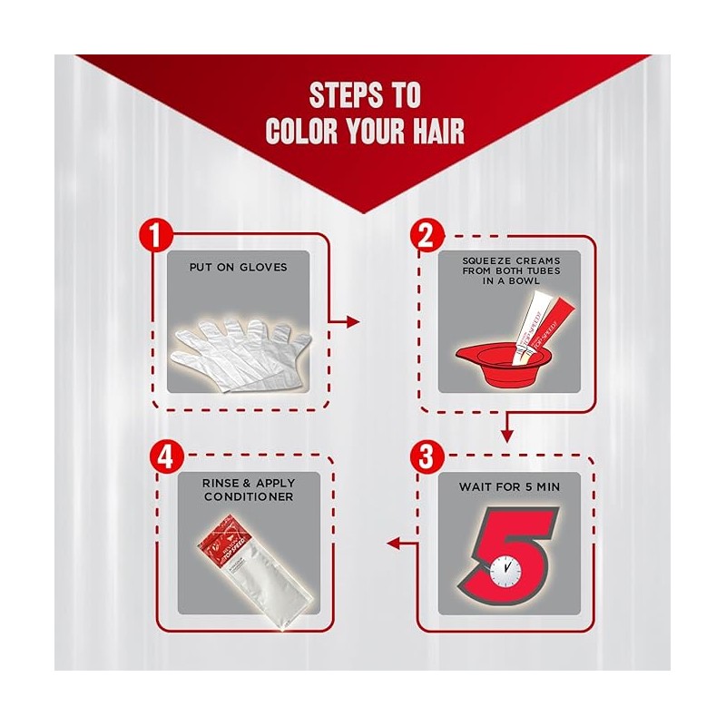 • Revlon top speed is an ammonia-free hair colour that covers grey hair in just 5 minutes. It is infused with mother of pearl and ginseng root extract that deliver shiny and resilient hair after every use. It gives you 100% grey coverage and shiny and nourished salon-like hair at the comfort of your home.