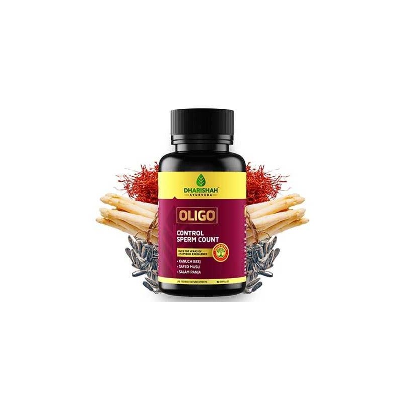 Dharishah Ayurveda Oligo Tablet helps in solving underlying issues with sperm count and motility. It works towards the root cause, increases sperm count using dietary supplements, and boosts sexual potency. These tablets contain 15+ Indian herbs, all known to not just increase sperm count, but also improve its quality and quantity.