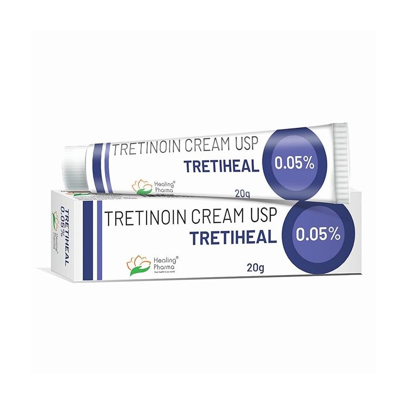 Tretiheal 0.05 % Cream is a vitamin A derivative used to treat acne that occurs as patches or pimples on the face, chest, or back.
