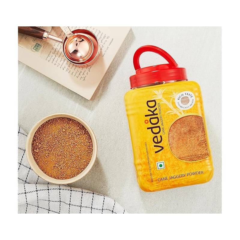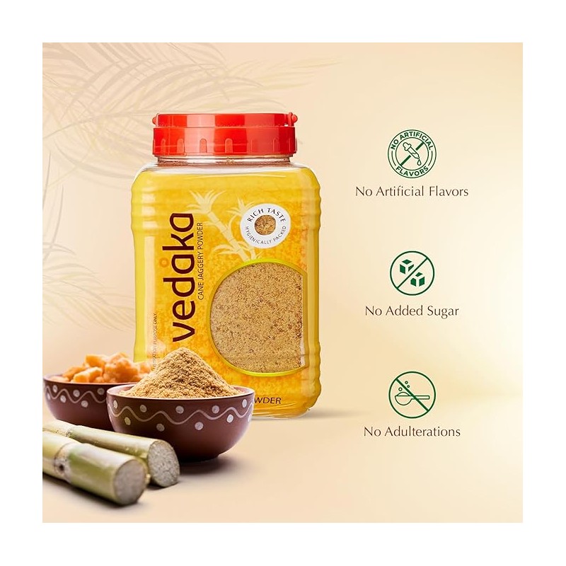 • Substitute for sugar & honey Vedaka Jaggery powder adds a unique flavour to your food. It can also be used as a substitute for sugar and honey. Ideal for use in everyday cooking or for preparing a variety of delicious desserts like kheer, burfi and more for your family.