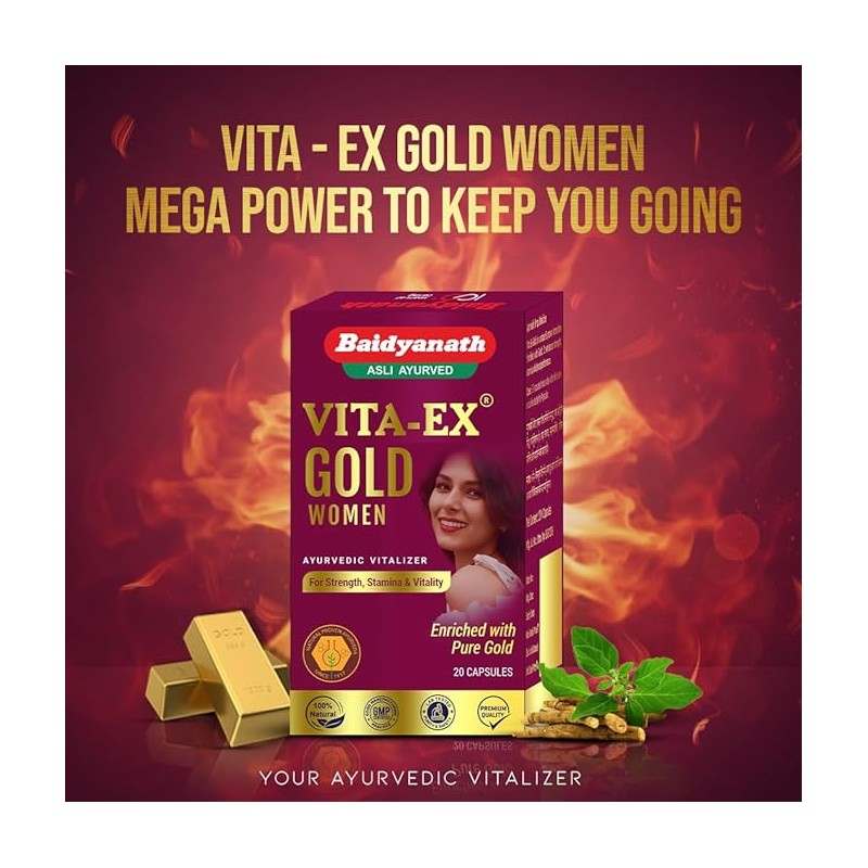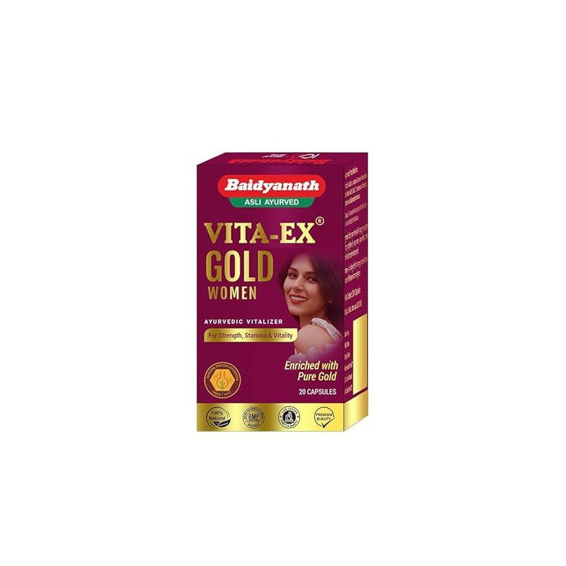 • Baidyanath Vita Ex Gold Women has been composed with the purest of herbs. Consume 1-2 capsules with milk or water, twice a day or as directed by the physician.