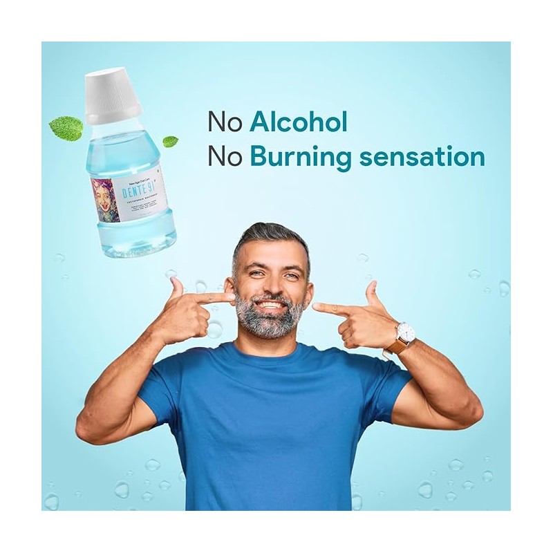 • No Alcohol, No Burning Sensation: Dente91 Mouthwash is alcohol-free and hence has no burning sensation or dryness in the mouth. Antimicrobial Properties: Lactoferrin in Dente91 Mouthwash has Antibacterial, Antiviral, Antifungal & Anti-Inflammatory properties.