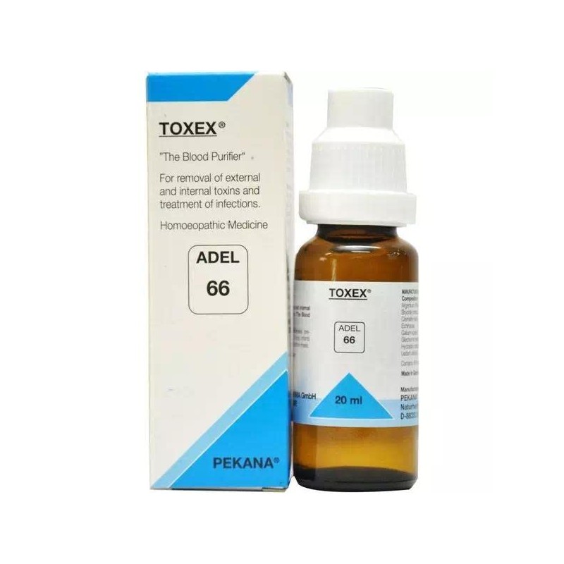 ADEL 66 Toxex Drop is used to treat toxins in the human body. It regulates nerve function and combats depression, weakness, the sensation of whirling and loss of balance (vertigo), nervous restlessness and exhaustion accompanied by migraines or headaches.