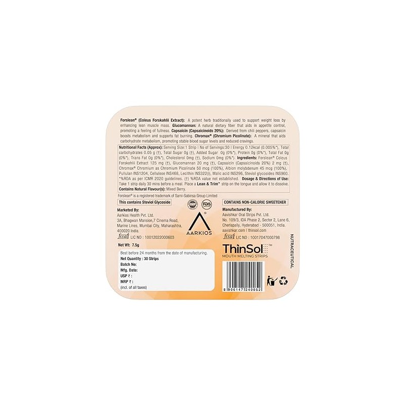 • METABOLISM BOOSTER WITH CHROMIUM SUPPORT: These strips are enriched with Forslean, a potent herb extract from Coleus Forskohlii, renowned for promoting lean muscle mass. As a metabolism booster, they play a vital role in effective Weight Control & Management.