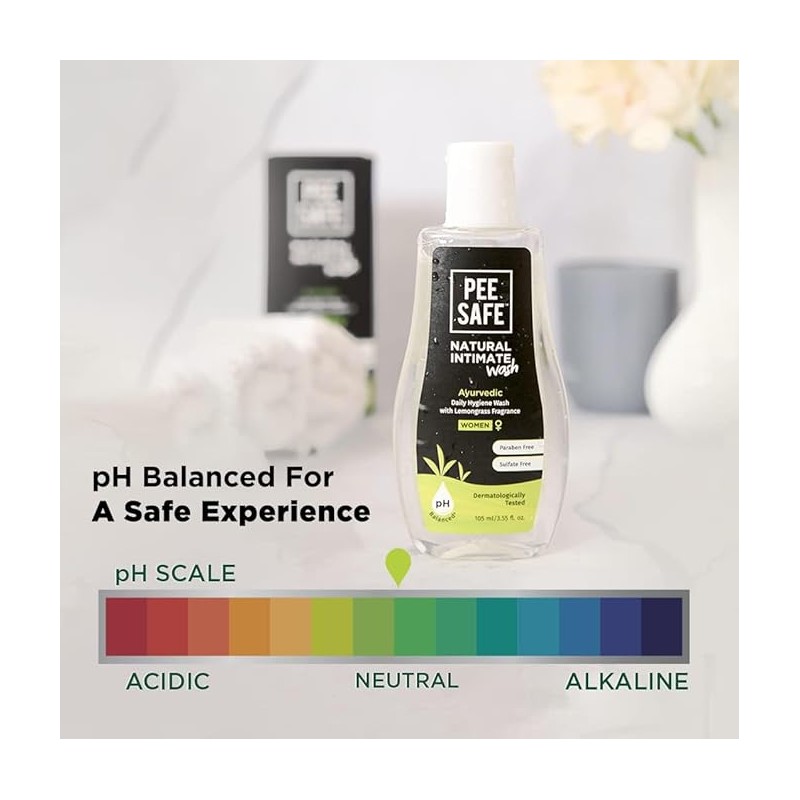 • Pee Safe Daily Natural Intimate Wash For Women is paraben-free, sulfate-free & 100% alcohol free. It is also pH balanced, making it the safest and purest wash for your genitals.