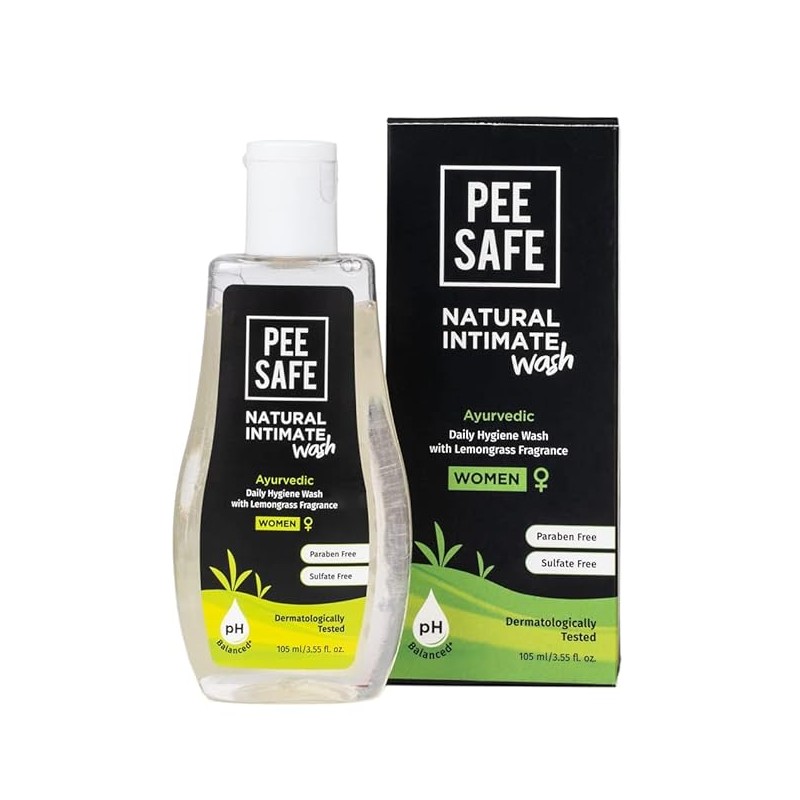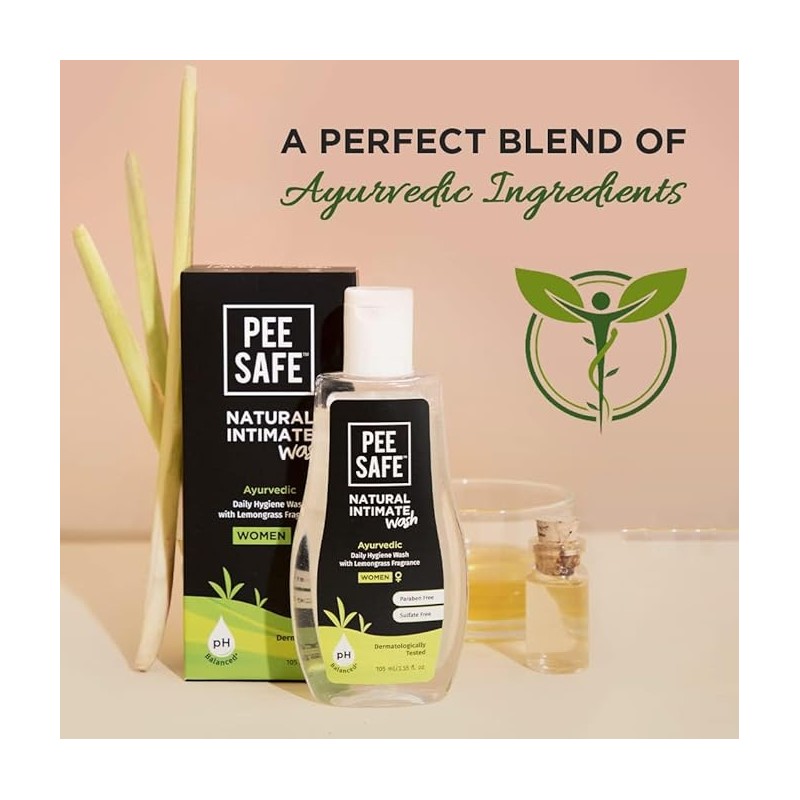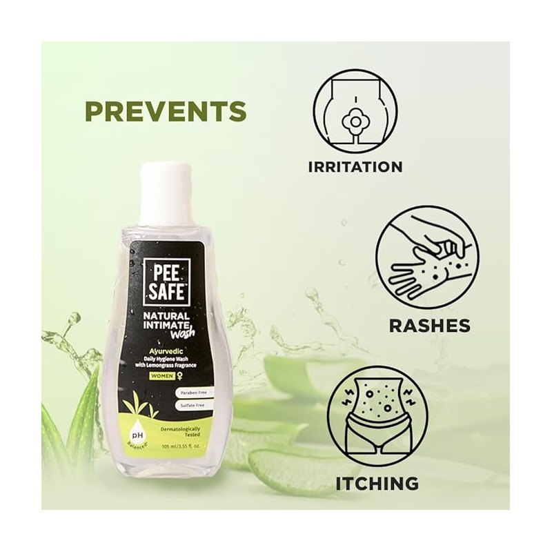 • Pee Safe Intimate Wash For Women Natural Ayurvedic with Lemongrass Fragnance and 100% Alcohol-Free | pH Balanced | Paraben-Free | Sulfate-Free | 105ml Pack of 1
