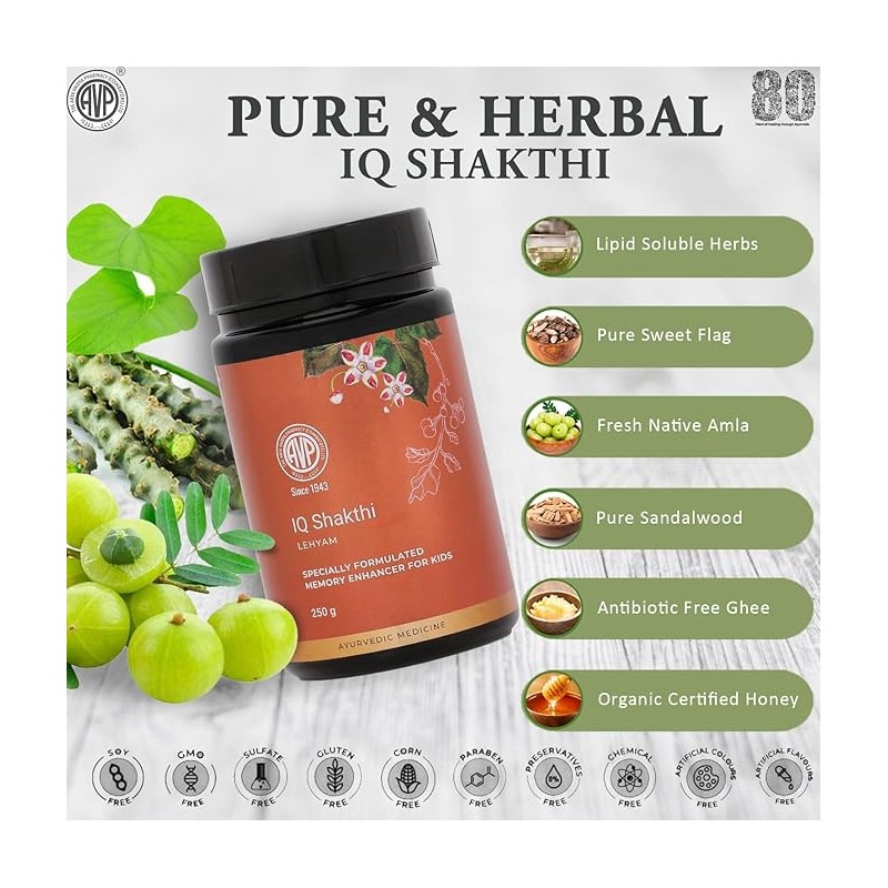 AVP IQ Shakti 250g Brain Booster for Kids Ayurvedic Medicine (Lehyam) Specially Formulated for Kids