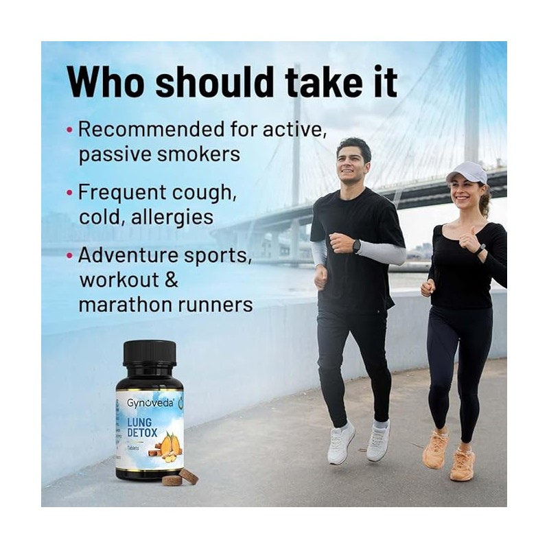 • Gynoveda Lung Detox Tablets is 100% Ayurvedic formula that gives long lasting results.