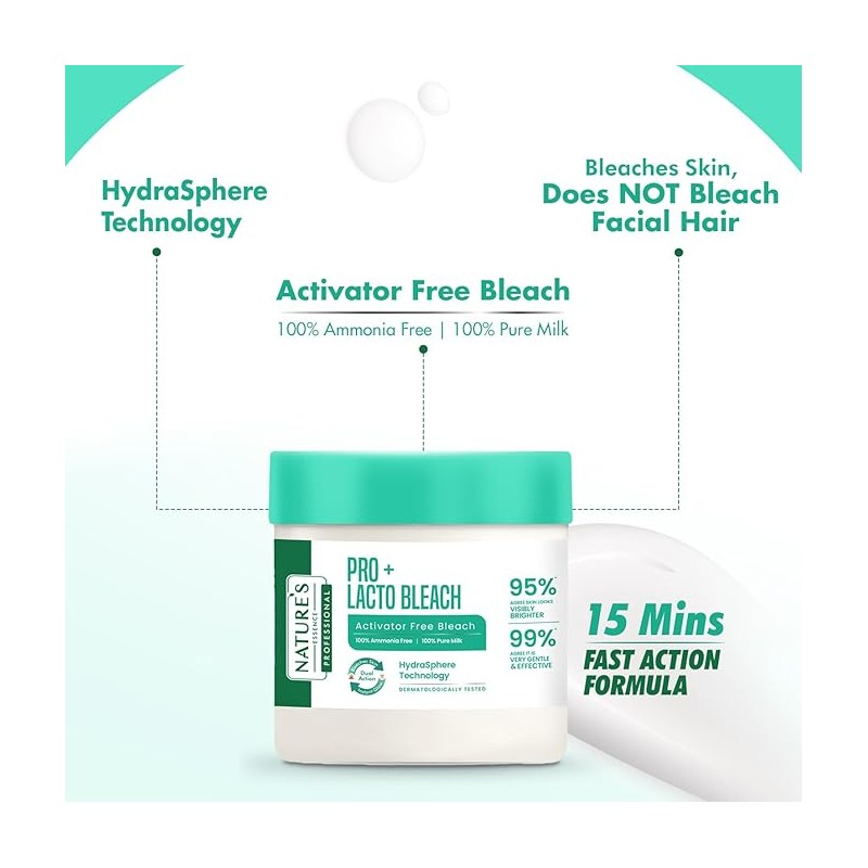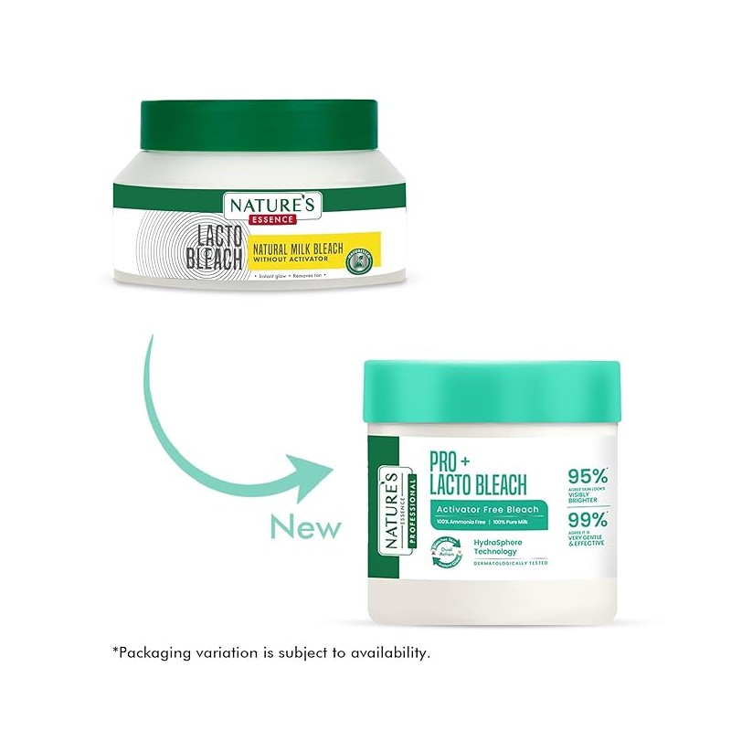 • Get a bleach like glow naturally with Nature's Essence lacto bleach. Lactic acid from milk supports cell renewal while lavender oil balances skin ph.