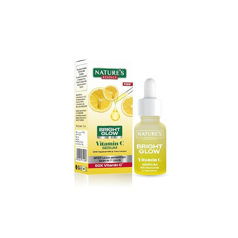 • The Nature's Essence Bright Glow Vitamin C serum is formulated to brighten and balance skin tone. Enriched with 50 times the potency of Vitamin C, combined with Niacinamide and lemon, this serum helps to provide spotless and visibly brighter skin in just 7 days