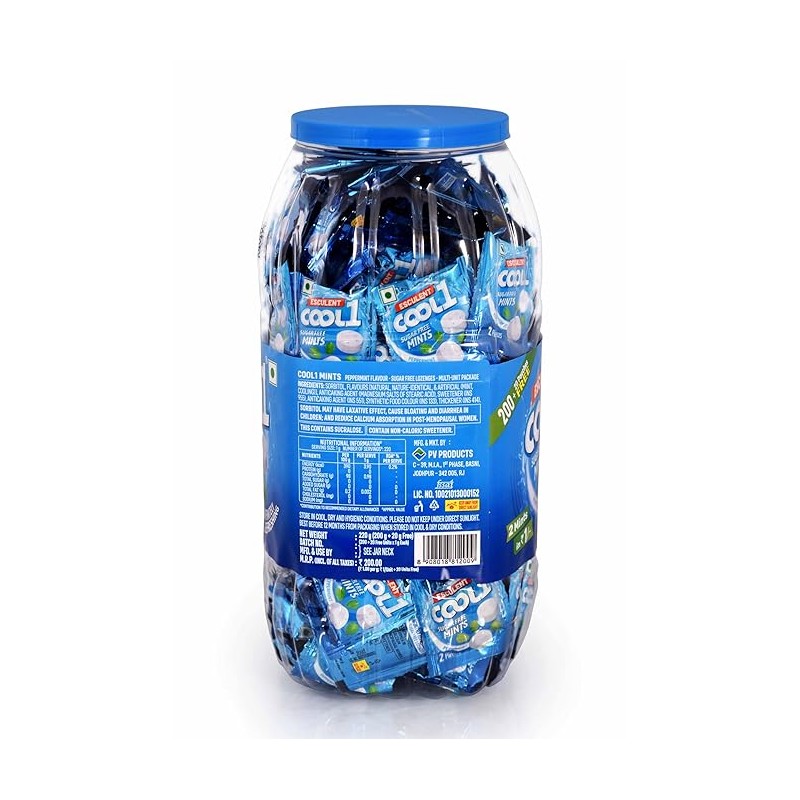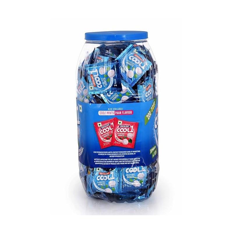 • COOL1 Mints Sugar-Free Peppermint Flavour (Sachets in Jar packing) | 220 Sachets of 2 Mints Each | 220 g per Jar