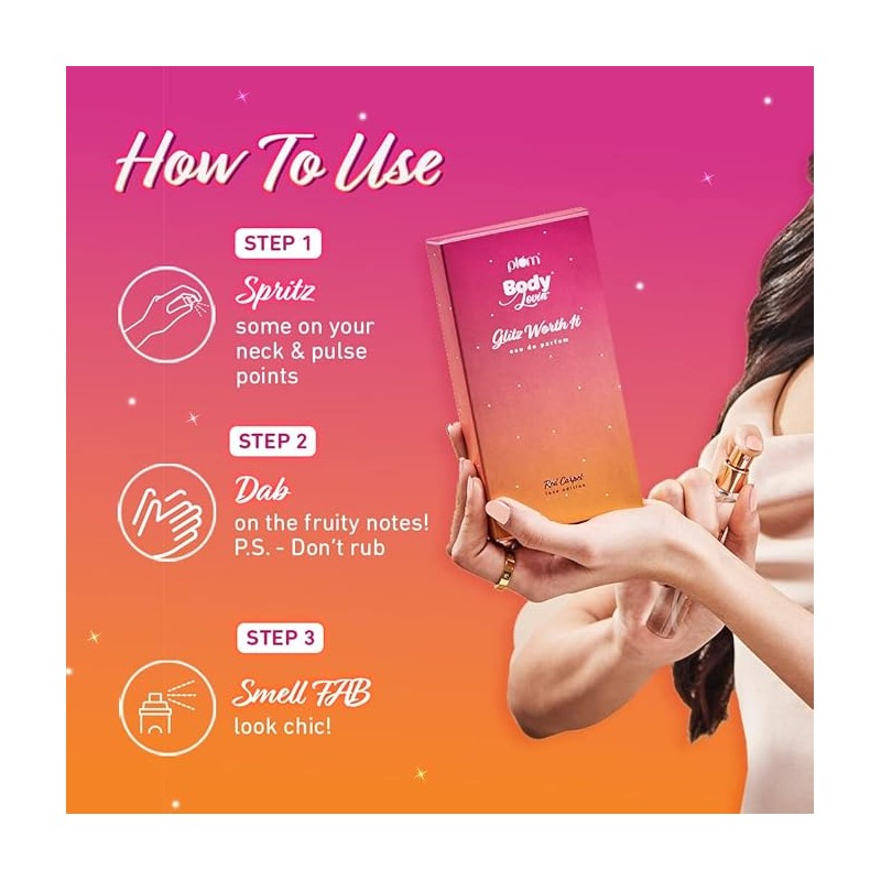• Get ready to go to Glam-sterdam! This premium perfume from the Plum BodyLovin’ Luxe Red Carpet Collection is the glitz-worthy experience you’ve been waiting for.