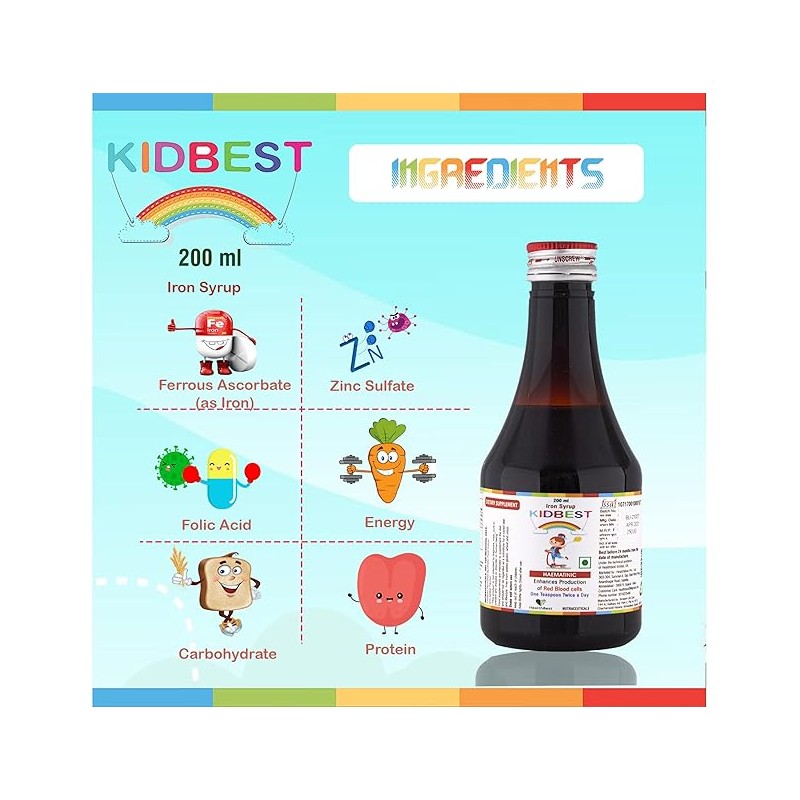 • HealthBest Kidbest Iron Syrup is an easy and delicious way to provide kids with essential multivitamins and minerals.