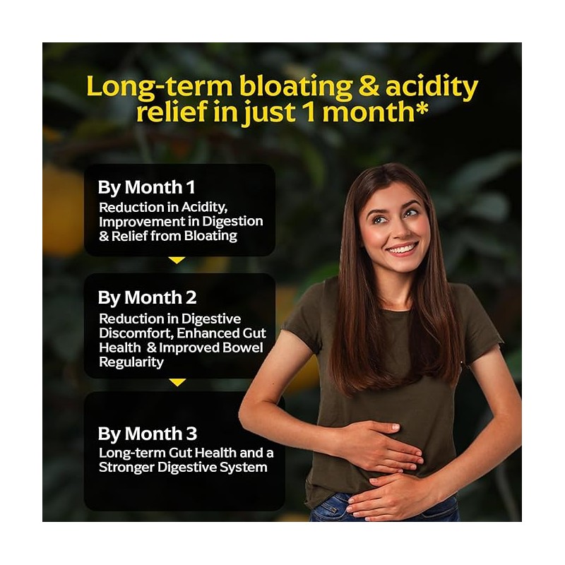 • EXPECTED RESULTS: Within month 1, you may experience reduction in acidity, improved digestion, and relief from bloating. The soothing properties of Mulethi & Ginger start to nourish your stomach lining, promoting a healthier system. Over month 2, the benefits become more noticeable. You may experience reduced digestive discomfort, enhanced gut health, and improved bowel regularity. Continued usage of natural probiotics helps support long-term gut health and a stronger digestive system.