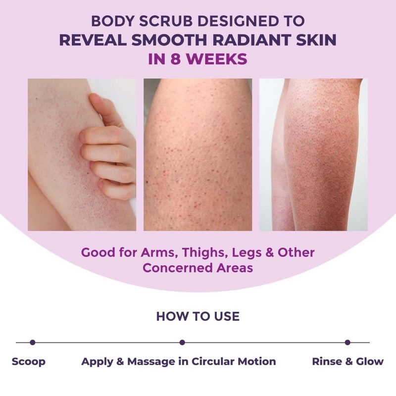• Minimizes the appearance of strawberry skin: Don't let strawberry skin hold you back. Our scrub is specially formulated to reduce the appearance of those stubborn red bumps, ingrowns giving you smoother, more even-toned skin.