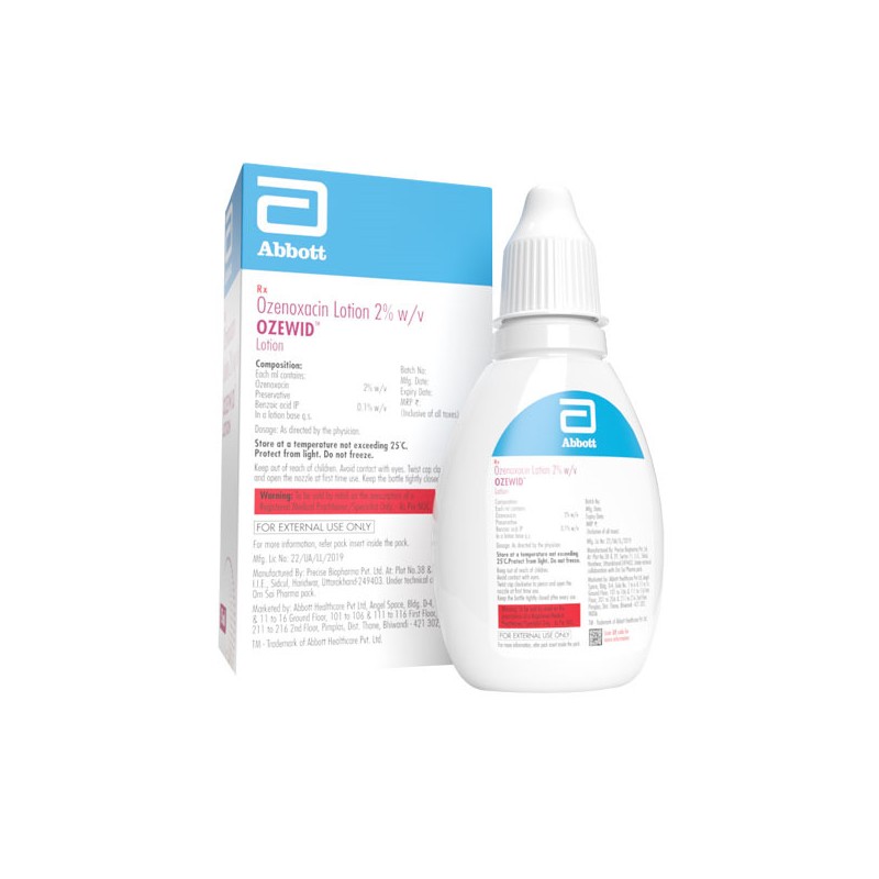 • Ozewid Lotion is an antimicrobial medicine. It is used for topical treatment of superficial skin infections and acne. It inhibits the infection-causing bacteria and prevents their growth and further spread of the infection.