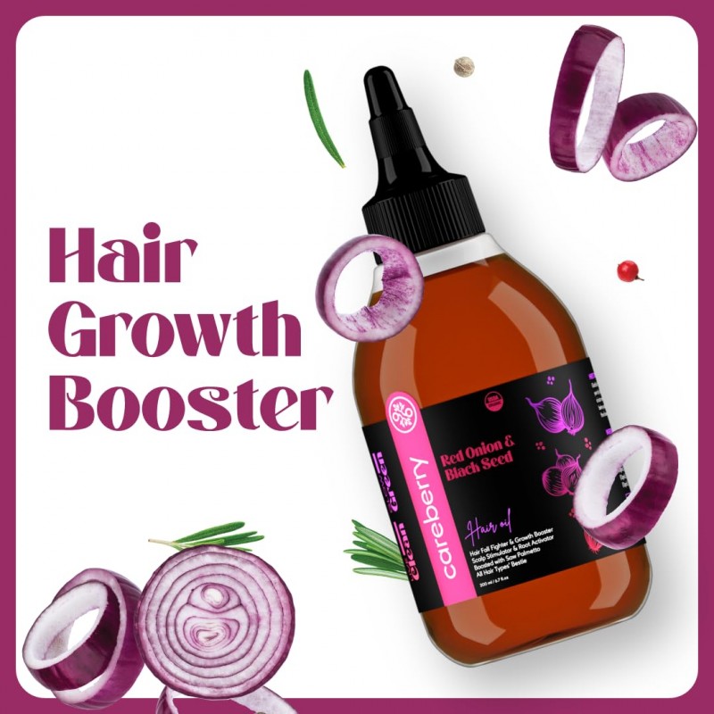 Careberry Organic Red Onion Hair Oil For Hair Growth  Oil & Non-Sticky - 200ml (pack of 2)