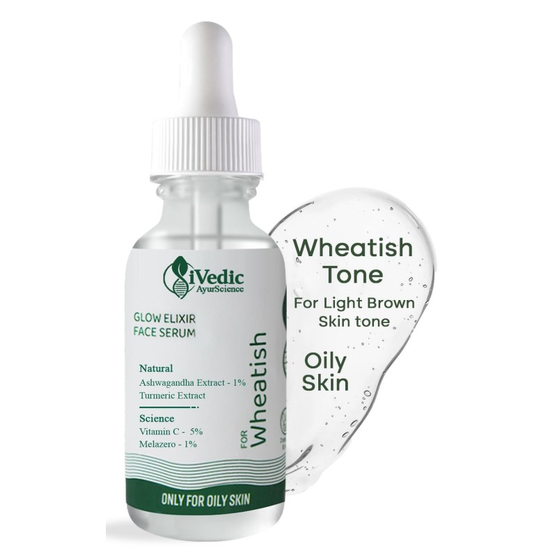 iVedic AyurScience Skin Brightening Face Serum for Women and Men (1% Ashwagandha Extract, Turmeric Extract & 5% Vitamin C) Removes Tan and Pigmentation - Suitable for Oily Skin - 30 ml