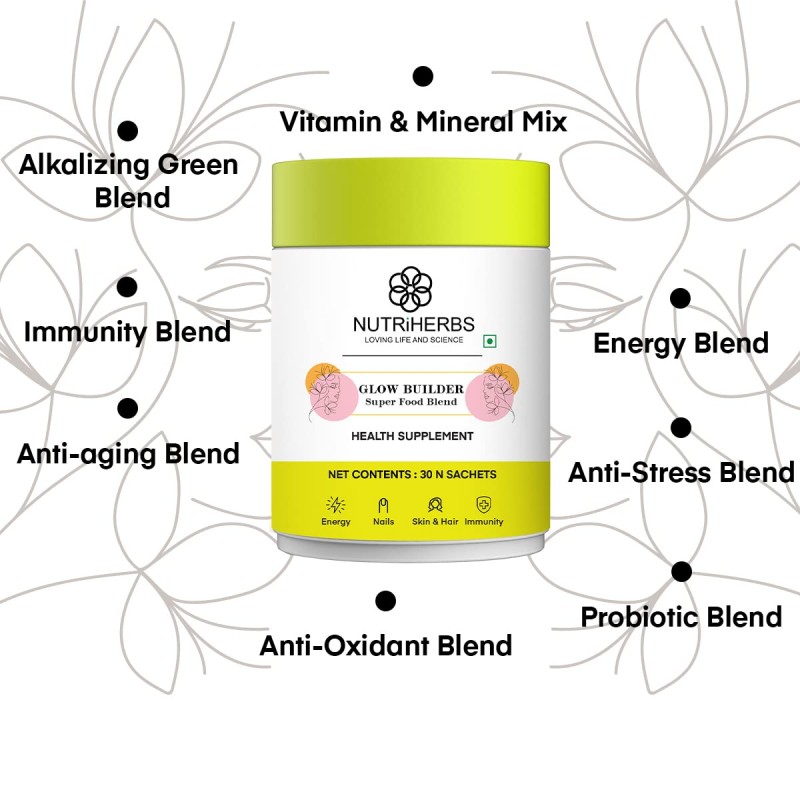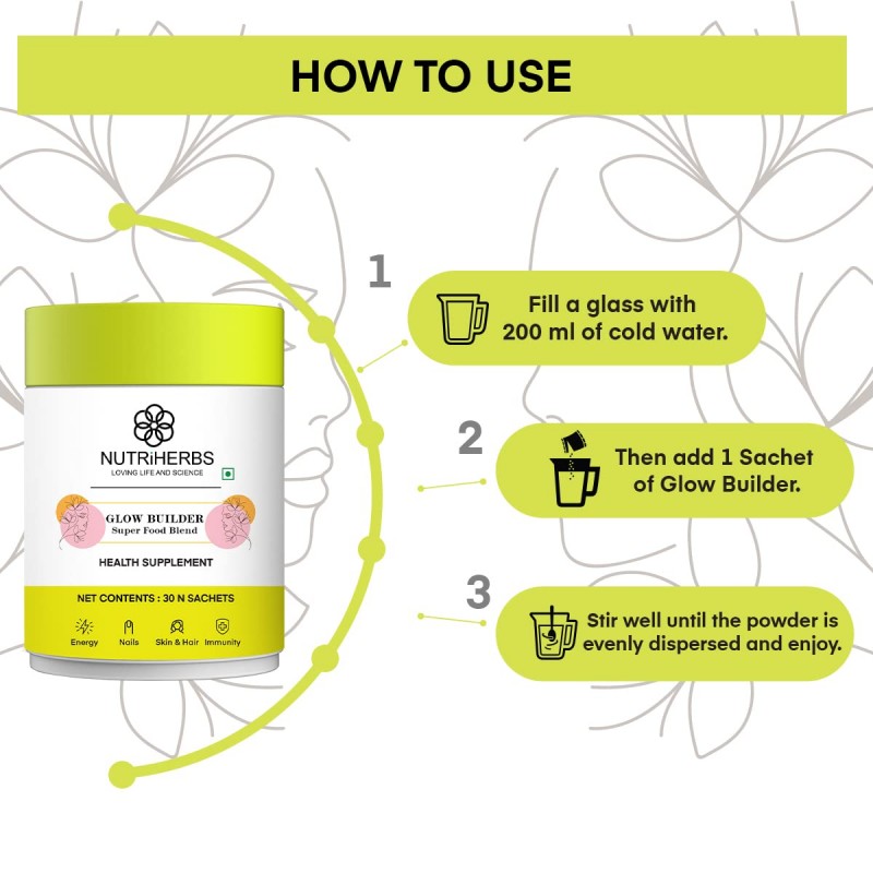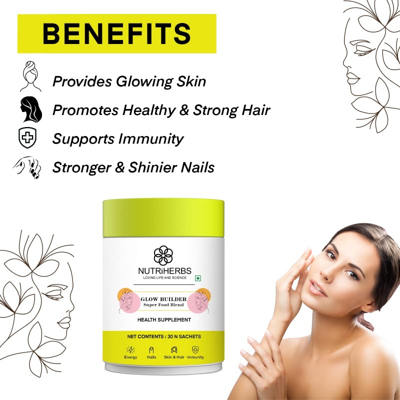 NUTRI HERBS Glow Builder Collagen Supplement For Skin Glow Vegan Collagen Booster With Vitamin C For Men & Women Radiant, Hydrated Skin Support Organic Beauty Collagen - 30 Sachets