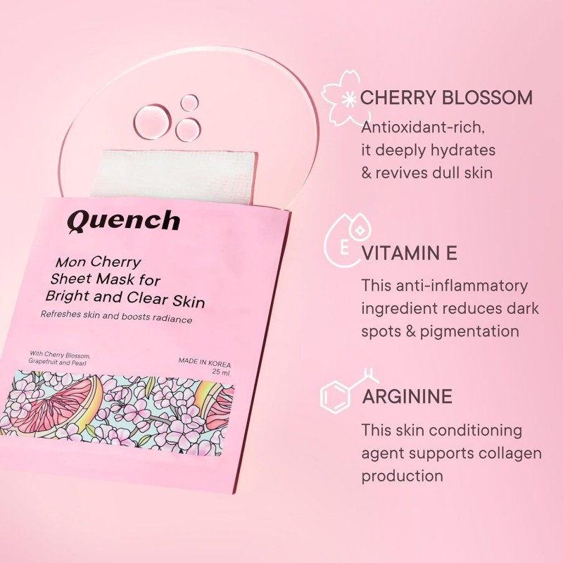 Quench Brightening Korean Sheet Mask with Cherry Blossom Radiance | Korean Face Mask for Glowing Skin | Hydrates Skin and Evens Out Skin Tone | Made in Korea