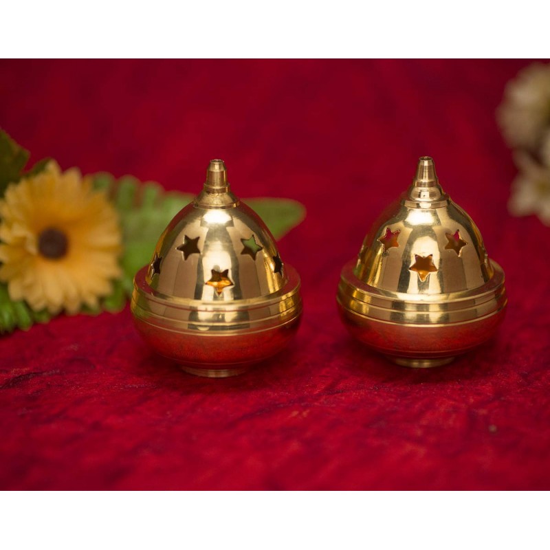 Pure Brass Apple Shape Diya with Star Holes (Pack of 2)