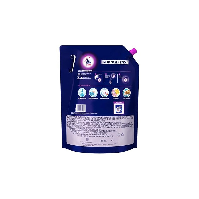 Surf Excel Matic Front Load Liquid Detergent Refill Pouch -  4L