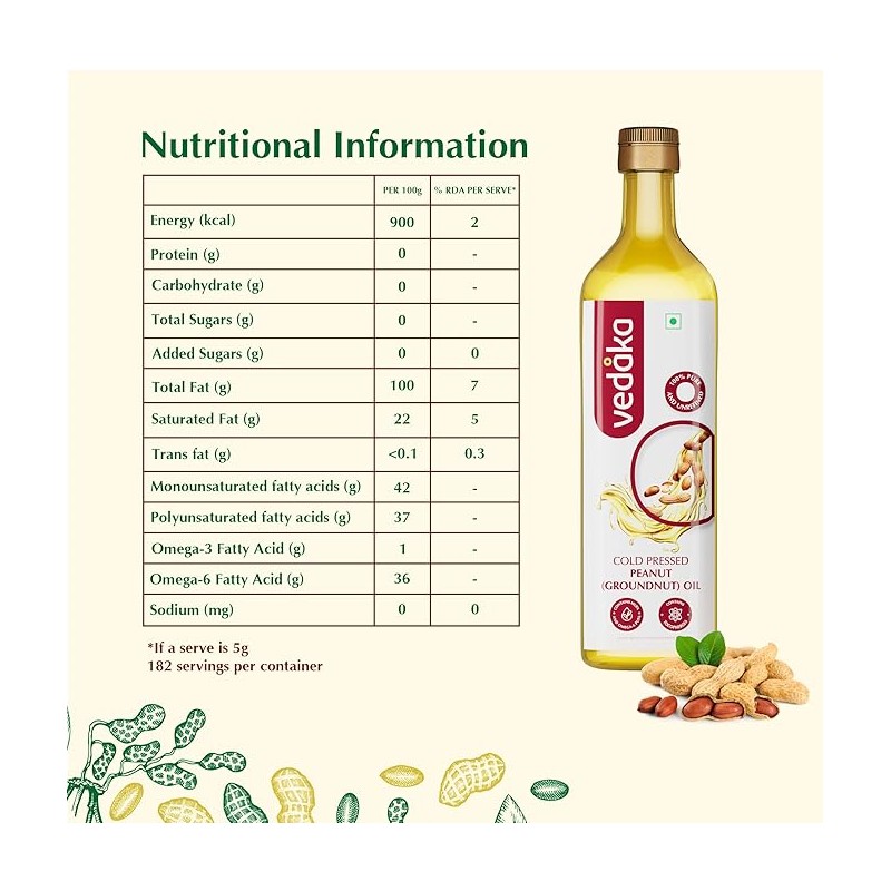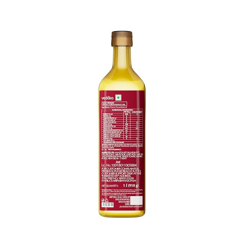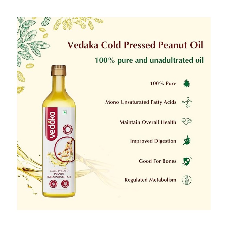 Vedaka Cold Pressed Peanut (Groundnut) Oil 1L (Ghani)