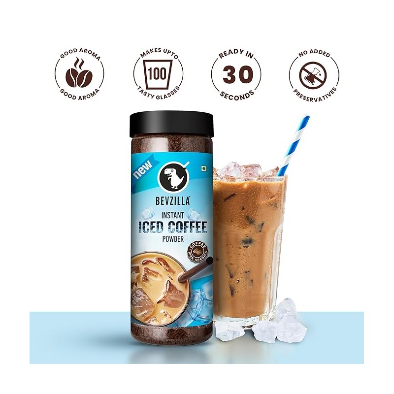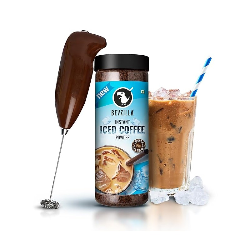 Bevzilla 200 Gram Instant Iced Coffee Powder & Frother Combo Make 100 Cups